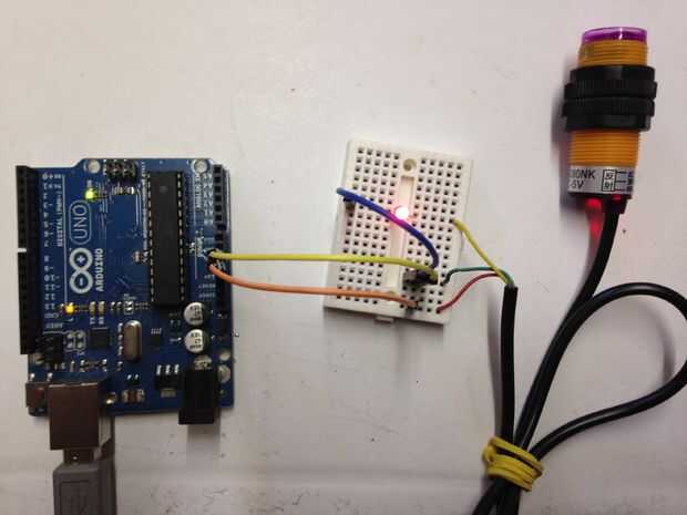 En este punto usted puede encender su Arduino y el LED debe estar encendida hasta que se interrumpe la "viga" del interruptor.