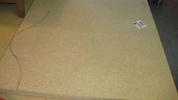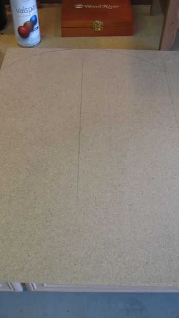 2. siguiente trazada en la forma básica quería mi lápidas. Hice una pequeña investigación en línea y encontrar 2 diversas tumbas mira que me gustaba. uno con la mitad clásico redondo superior y el otro tenía una tapa curvada más complicada. Utilicé un lápiz y una cadena tirada firmemente en el centro de las curvas para dibujar de mi corona de la piedra sepulcral. La altura total de mi lápidas es derecho alrededor de 24 pulgadas y el ancho de unos 18 pulgadas.