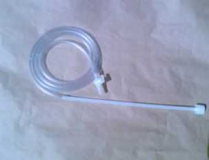 Sostenga la manguera horizontal, dunk uno de los extremos en la mezcla y chupar chupar chupar para llenar el tubo con el líquido, la descarga final en la boca en el nuevo tomacorriente. Suena fácil, pero requiere cierta habilidad y sentirse cómodo con la presión.