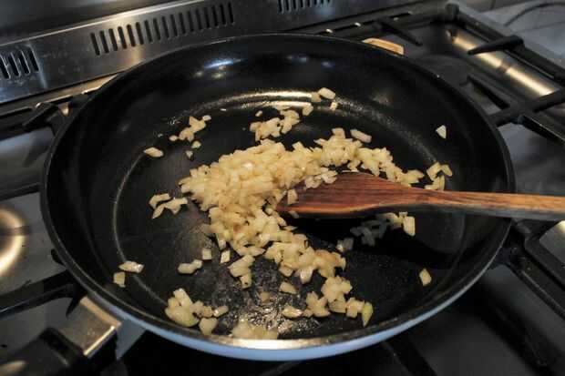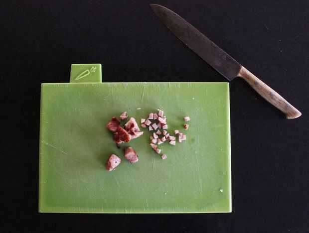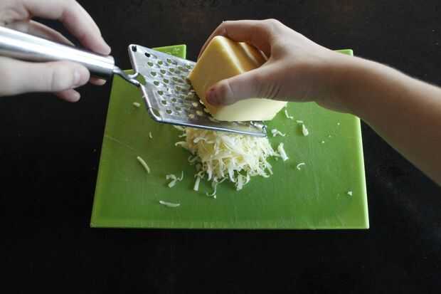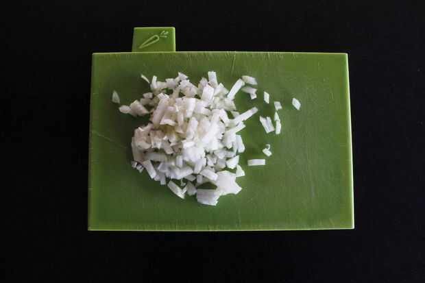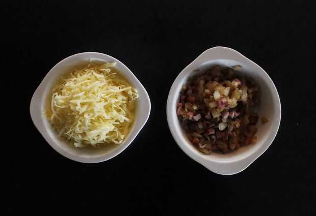 Primero cocinar el tocino, luego cortar en pequeños trozos y reservar. Finalmente, picar la cebolla y utilizando la misma sartén, cocinar la cebolla hasta que transparente y ligeramente dorada. Mezcle la cebolla y el bacon y reservar hasta que esté listo para usar. Si utiliza el bloque de queso, ahora es el momento de rallarlo.