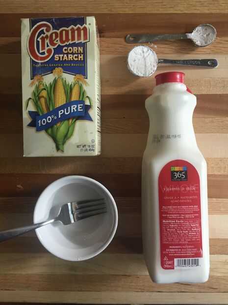 • Mezclar 2 cucharadas de tablas de leche con maicena para hacer una mezcla suave.