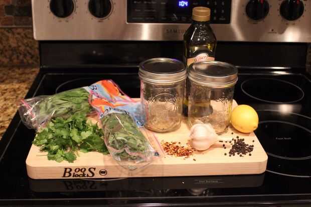 - sus hierbas favoritas (estoy usando albahaca, orégano, cilantro)