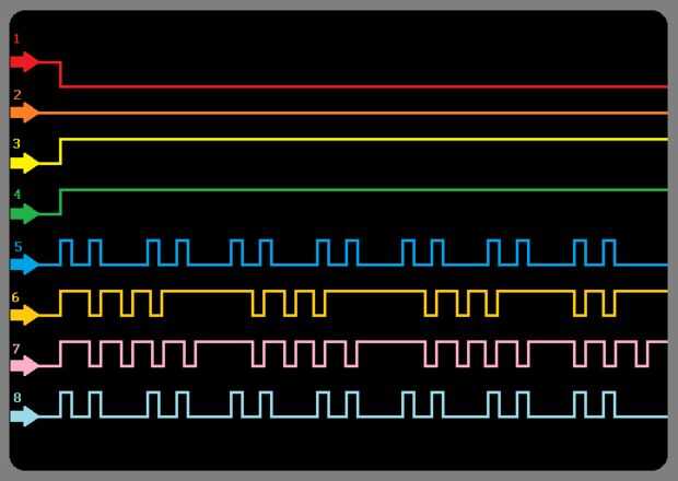 Un analizador lógico sería mejor para el análisis de las entradas de señal, pero puede utilizar un osciloscopio y registre los resultados para obtener la misma información. Establecer su osciloscopio para escanear a una velocidad que se puede ver la secuencia de datos cuando empujas uno de los botones.