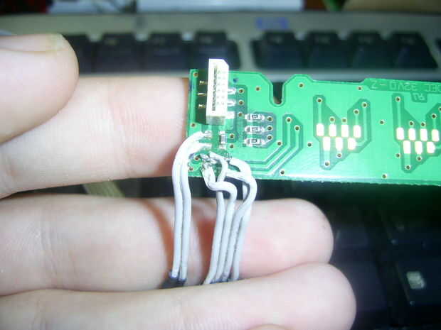 También desnudaron los otros extremos y soldado en algunos pines por lo que pude conectar en mi analizador de lógica.