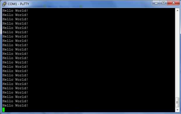 Nota: Envía a mi programa de Hola mundo "Hola mundo! \r\n" en la serie a mi ordenador a 38400bps