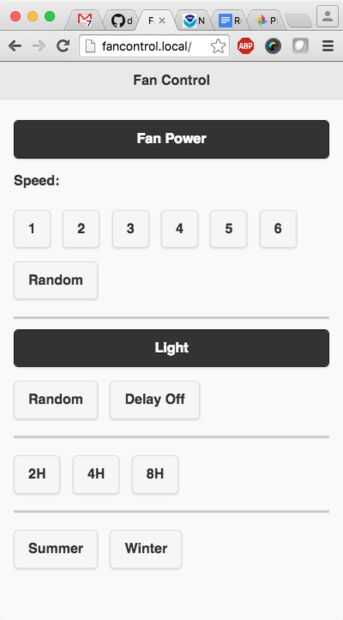 De la web basada en interfaz de usuario puede operar el ventilador, como el NodeMCU está en la gama - para mí 15 pies no es ningún problema.