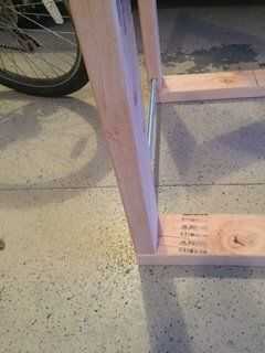 Perforar cada pieza de 2 pies de madera perpendicular en el otro extremo de la pieza de 3 pies de madera.