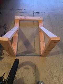 Perforar cada pedazo de 33.94 pulgadas de madera cada pieza de 2 pies y el pedazo de 3 pies de madera como se muestra en la imagen.