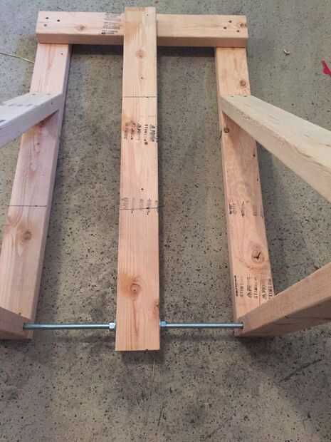 Poner la pieza de 3 pies de madera que ha perforado el orificio en la barra de metal en el centro. Ponga las arandelas y los pernos alrededor de él para que la pieza de madera no se mueve de lado a lado.