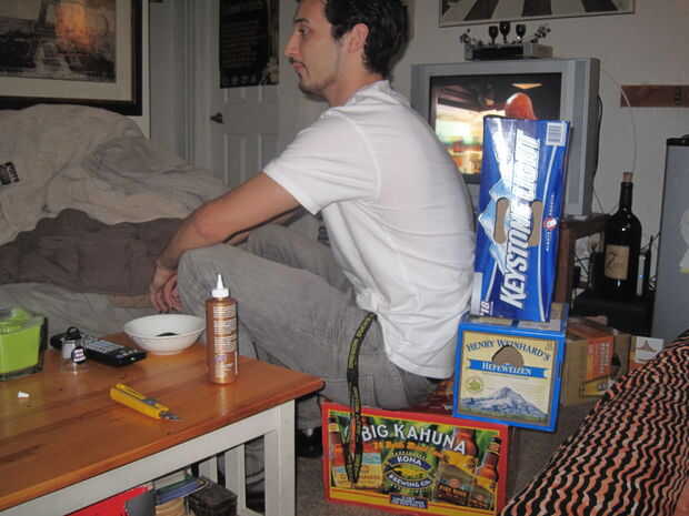 Repita los pasos uno y dos para otras cajas y luego super pegamento ellos uno encima del otro para crear una única silla hechas de material reciclable.