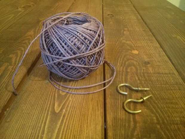 La cadena no tiene que ser super fuerte a todos. Acababa de usar algunos cordeles de cáñamo que tenía en mano, pero probablemente podría utilizar hilo dental (alguien intentar esto!). Usted probablemente necesitará al menos 24 pies.