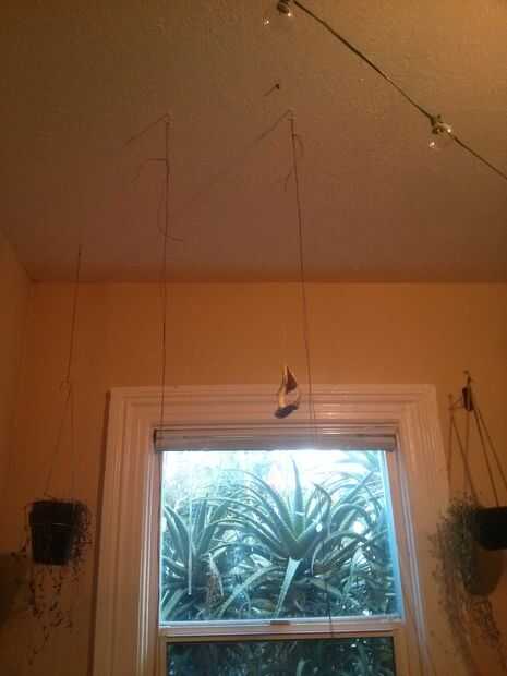 Corte dos piezas largas de la cadena y lazo en los lazos de tamaño igual. La longitud dependerá de la distancia entre su cama y techo y qué quiere el portátil. Nuevo, medida exacta no importa, porque se puede ajustar después. Mejor sobreestimar la cantidad de cadena que usted necesita.