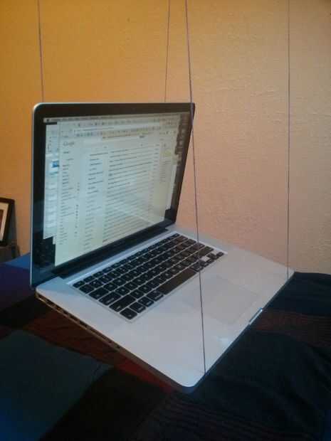 Entonces, basta con insertar su ordenador portátil en los bucles. HECHO! Usted puede colocar su ordenador portátil de cualquier manera que usted desea para su placer de ver.