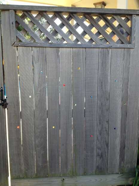 Ya nos suelta habían montado de los mármoles en la valla necesitamos asegurarlos. Utilizando silicona transparente grado exterior, exprimir un cordón de silicona alrededor del borde externo del mármol. La silicona apriete las canicas en la cerca.