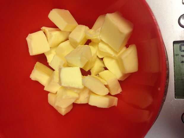 Encender la batidora y añadir poco a poco la mantequilla permitiendo que cada adición a migas antes de añadir más.