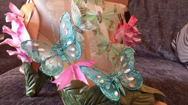 Pegado y había cosido a mi selección de mariposas en su lugar. Algunos de ellos llegaron con los cables que roscado a través de la zapatos y vuelve a salir otra vez (para no conseguir asomó por el alambre mientras camino)
