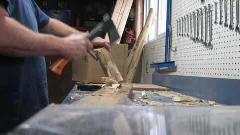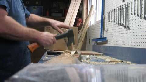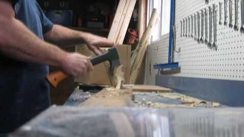 Ahora usando un hacha afilado (yo uso un Fiskars), afeitarse la rama por cortar pequeños pedazos finos.