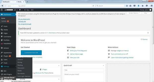 Esta es otra opción más importantes que usted necesita saber al configurar un blog de negocios usando Wordpress. Puede realizar muchas tareas aquí como añadir título del sitio, lema de tu blog, seleccionar zona horaria, formato de hora y fecha, idioma de tu blog, configuración de artículo, post ajuste, estructura de enlace de tus posts etc..