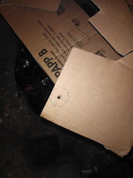 Así pues, cogí la broca y medí el diámetro en cartón, lo corté y pegué al fondo del agujero principal. No lo cubría todo, un poco del sitio secreto se puede ver, pero está bastante cubierto.