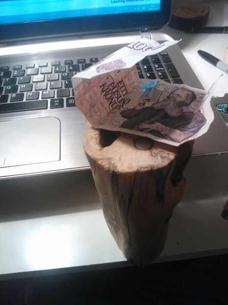 Pude poner una ley islandesa, 1000 kr. Pero tenía que doblar mucho, así que sí, es realmente pequeño, pero al menos es algo. =)