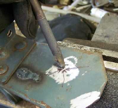 Toque la punta de la varilla de carbono al acero justo detrás del punto donde el grano es empezar. Asegúrese de usar guantes de soldador.