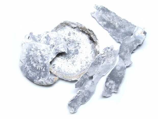 Imagen Nota: piezas de zinc de una pila de zinc-carbono. Óxido de zinc es blanco, y supongo que es lo que estamos viendo aquí.