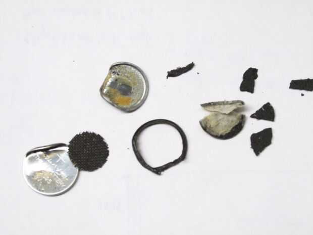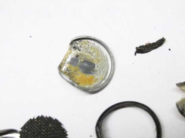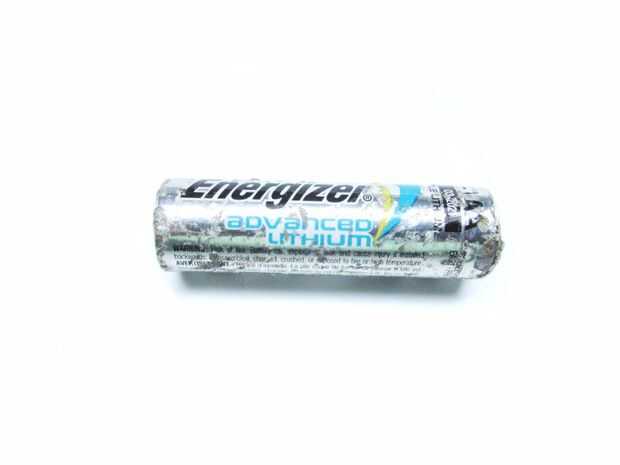 Todos estos se quedaron con la mitad negativa de la batería que desmonté. Quité, escogiendo a ellos con el destornillador, en el orden que se enumeran arriba. Cuando se peló la capa de cartón, de litio, más de la que había corroído en una sustancia blanca escamosa, salió con él. Accidentalmente marcaron algunos el suave del metal del litio que estaba todavía en el interior de la Copa de metal con mi destornillador, exponer una superficie fresca de gris y entonces vi con asombro como el dañado área corroída ante mis ojos. Inmediatamente comenzó a dar vuelta a marrón, y después de unos quince segundos había dado vuelta a un color gris muy oscuro, opaco. Más adelante esa tarde era un gris azulado, y al día siguiente se había vuelto blanco.