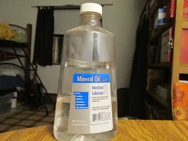 Aceite mineral es el mejor aceite para conservar muestras bajo porque es muy claro y no es inflamable. Usted puede comprar en las tiendas, creo que en el Departamento de salud y belleza.