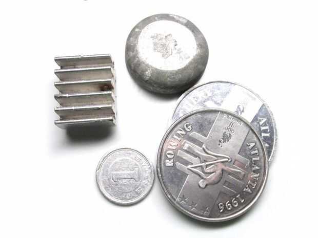 Aluminio (o aluminio, para gente de habla inglesa fuera de Estados Unidos) se encuentra casi siempre en forma de aleación, a veces con tanto como 15% otros elementos mezclan. Estos elementos añadidos grandemente mejoran la propiedades mecánicas del aluminio. Se utiliza como metal puro solamente cuando la resistencia a la corrosión, trabajabilidad, o calor y la conductividad eléctrica es más importante que la fuerza o dureza. Esto significa que son generalmente relativamente puro: