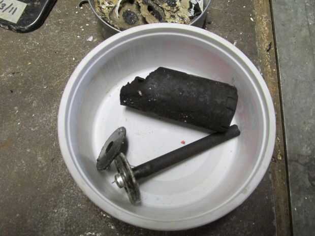 Varillas de carbón forman los electrodos positivos en común zinc-carbono pilas secas. Este tipo de baterías no tiene la palabra "alcalina" en el caso, pero suele decir algo como resistente, extra-heavy-duty o incluso super-heavy-duty. Las barras que se muestra salieron de una batería de linterna de 6 voltios muerto, y su extracción se detalla en las otras fotos. Para obtener instrucciones detalladas sobre el desmontaje de la batería, consulte este tutorial. Una vez que la barra del carbón de la batería, puede tener una sustancia similar al alquitrán pegajosa en un extremo; Esto se puede quitar con un disolvente (yo usé gasolina) en un trapo viejo. Cualquier residual polvo negro (dióxido de manganeso mezclado con carbono, húmedo con electrolito) todavía se adhiera a la varilla puede ser mojado enarenadas apagado, usando un trozo de papel de lija mojado o seco y agua corriente. Una limpieza final con agua jabonosa caliente prepara las varillas para la exhibición y manipulación directa.