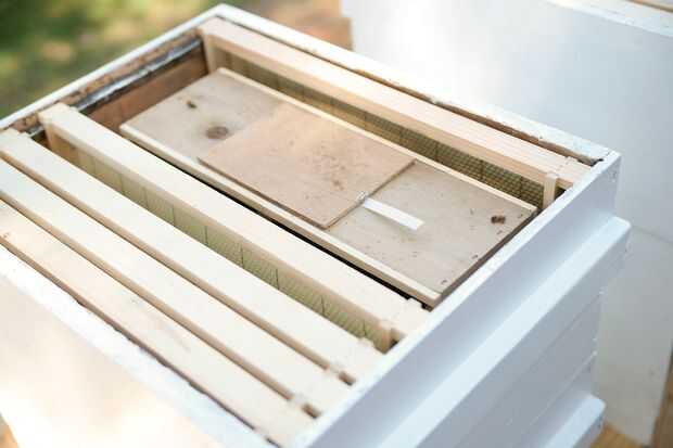 Deslice la cubierta de revelar el poder de alimentador. Quite el y cepille suavemente cualquier abejas que llegan con él. Reemplazar rápidamente la cubierta - al mismo tiempo no dejar que el cuadro de la reina hasta la parte inferior.