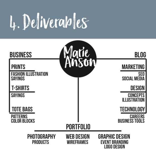 Mientras que las categorías describen el tipo de contenido disponible en su sitio, sus productos (deliverables) describe el tipo específico de contenido que se está creando. Mi rama muestra que: