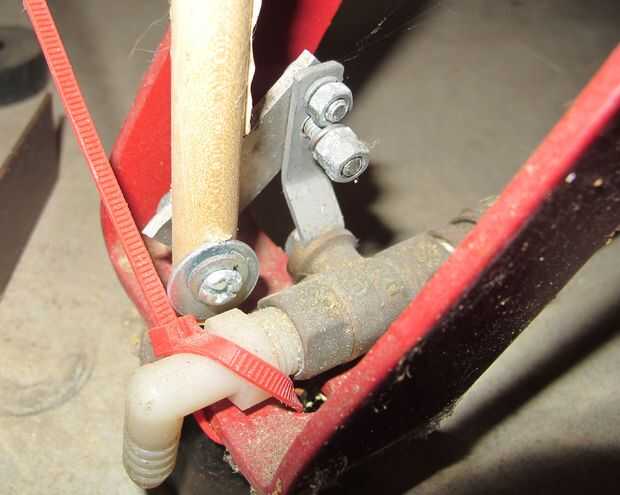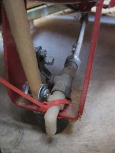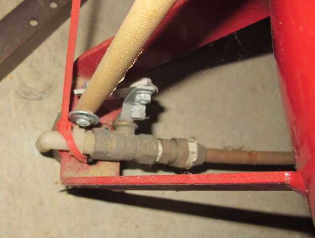 He querido poner la válvula donde podía llegar a lo más fácil, por lo que significó la instalación de unas tuberías. Terminé acabando a una de las patas para protección y facilidad de operación.