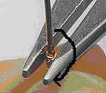 Frote el dedo sobre el extremo del cable a ver si se siente empujando hacia fuera. Si se siente, use los alicates de punta plana otra vez o un metal pequeño archivo a archivo poco puntiagudo hacia abajo.