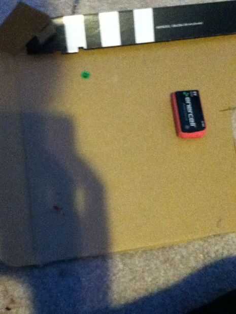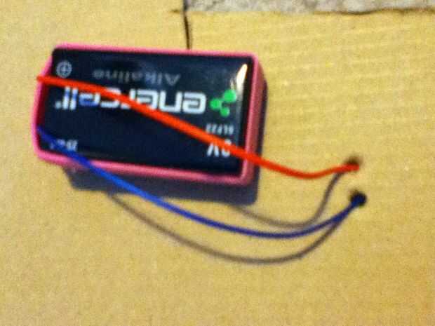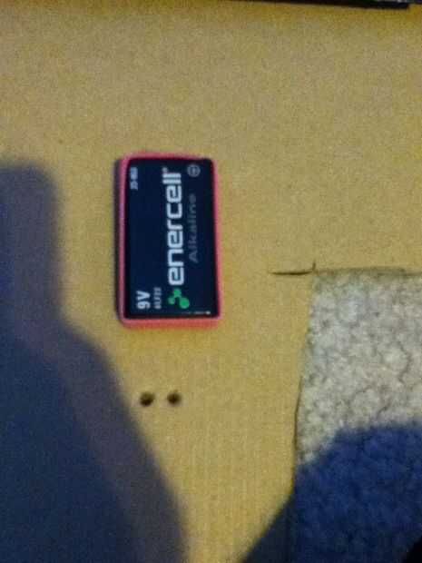 y que te quiere tu batería meter dos agujeros justo en frente de él. A continuación conectar los 2 cables a la batería y palillo a través de los orificios