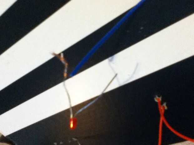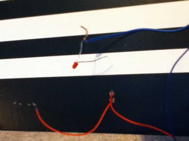Tomar el otro cable de la batería y conectarlo con otros dos cables. A continuación, conecte un cable a los LEDs y el otro para la alarma.