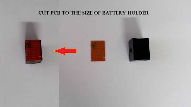 1. Corte el PCB igual al tamaño del soporte de la batería.