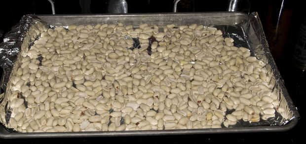 Prefiero empezar con cacahuates crudos que han sido blanqueadas para quitar su piel. Puede hacer esta receta muy bien con las pieles aún encendido, pero es mucho más complicado y generalmente no quiero piel del cacahuete en mi adobo.
