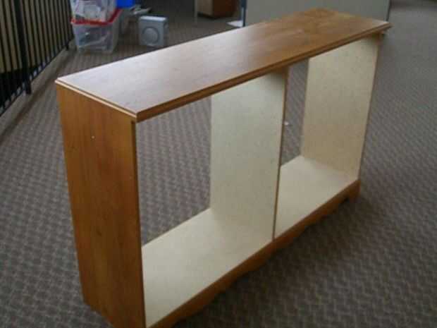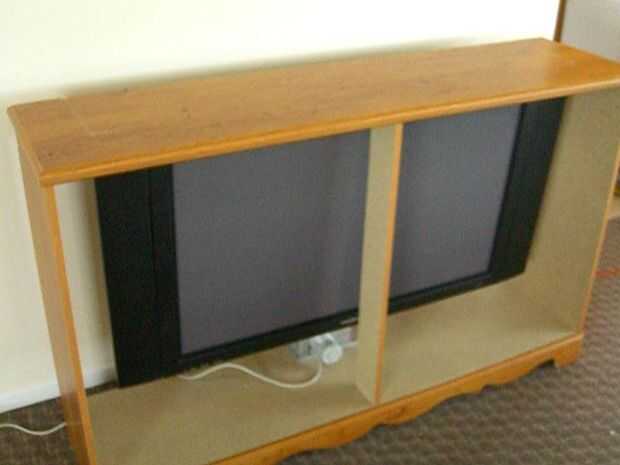 Nuestro gabinete tenía un soporte central que tuvo que ser recortado para permitir el Pop Up TV Lift y LCD TV en.