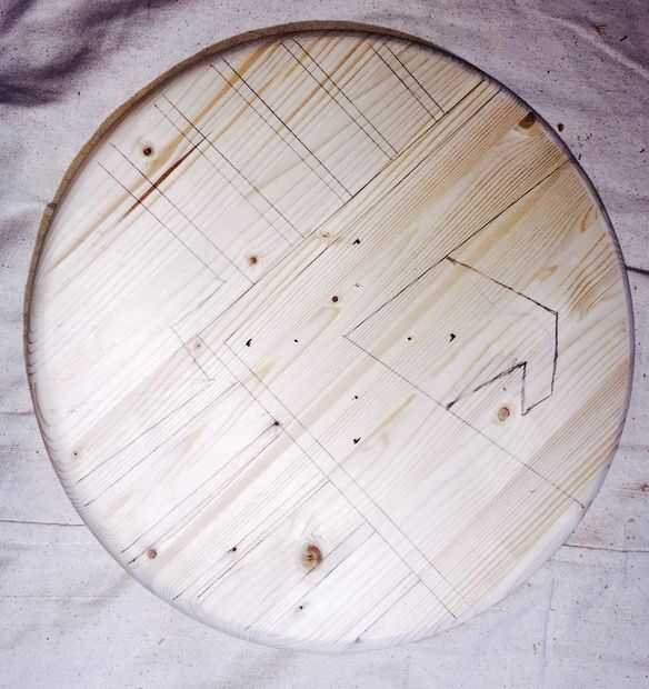Para la base de la tabla había trazada sobre mi logo de agentes de Shield (S.H.I.E.L.D) y había puesto mi trapazoid en el centro de la tabla mediante 4 tornillos. Asegúrese de pre perforar un fregadero tornillo para que no sienta la base de la tabla en los tornillos y que quede al ras del piso.