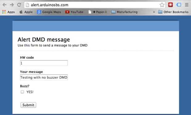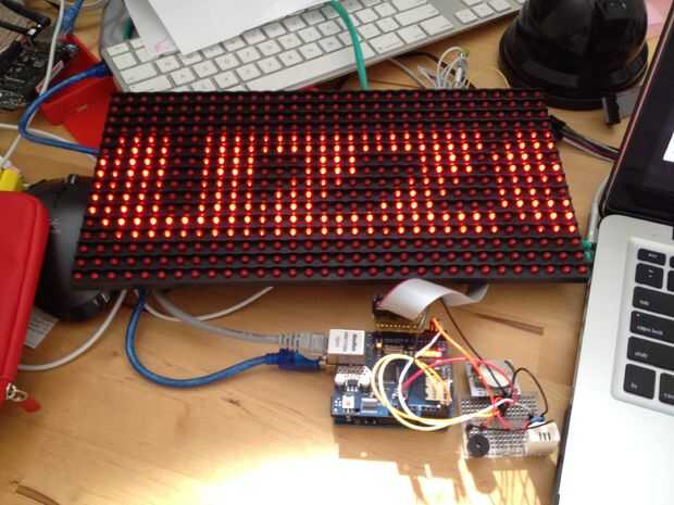 Tengo este problema a menudo suficiente para justificar una solución. Un poco de retoques con un Arduino y un Display de matriz de punto Freetronics (DMD) dio lugar a un gadget muy molesto (para mi esposa), pero un increíble dispositivo de comunicación e información del centro para mí. Me encanta, y es sólo la versión 1.