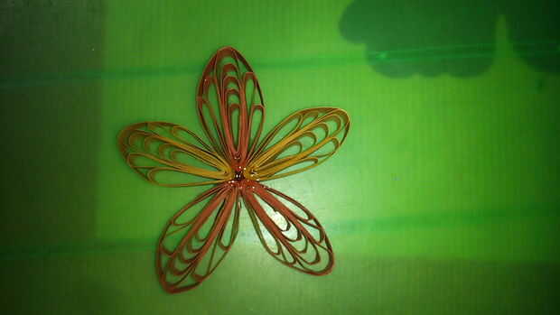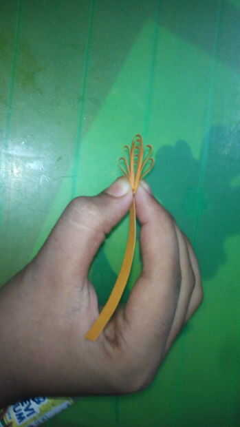 Se trata de otra cosa hermosa que se puede hacer con el peinado. En primer lugar una tira de quilling de papel, luego ponerlo en el en el peine como la imagen. Después de pegar con pegamento y comenzar a hacer el lazo pero en sólo un lado del peine como imagen. Hacer cinco lazos y pegar con pegamento y meterlo y sacarlo del panal. Ahora apriete la parte inferior del papel y empezar a hacer lazo (ver imagen). Dos grandes en cada lado y dos pequeñas a cada lado ahora usan el papel restante para hacer la capa externa y pegarlo. Su primer pétalo está listo. Ahora haga otra 4 pétalos y pegarlos como la imagen. Su flor está listo. Utilizar algún brillo para darle un aspecto hermoso.