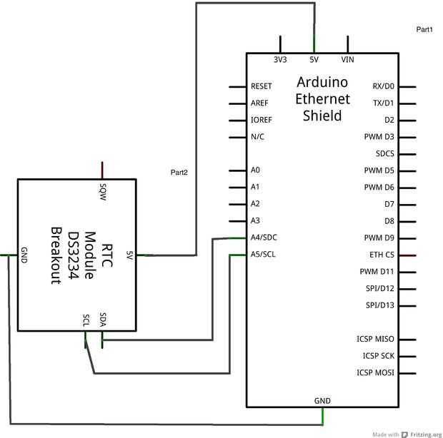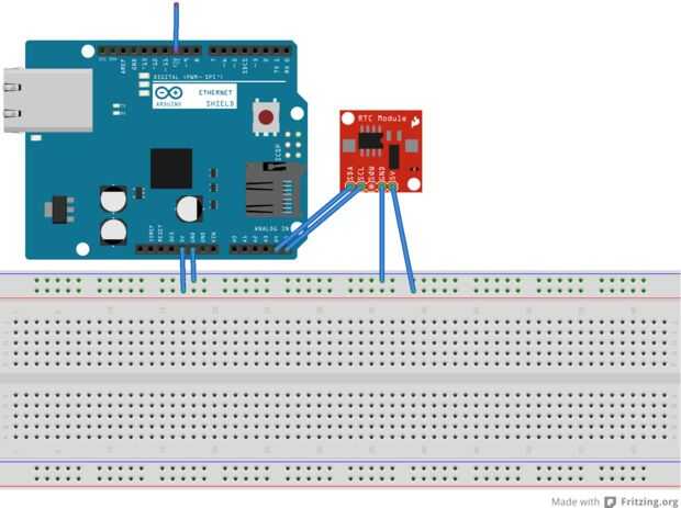 Se necesita conectar el V ++ (o 5V) del módulo RTC y el lado positivo de la RF remoto al pin de 5V de arduino (uso protoboard para esto). Los cables de tierra en el módulo RTC y el mando a distancia deben conectarse al conector de tierra de arduino. A continuación, conecte el SDA y SCL a A5 A4.