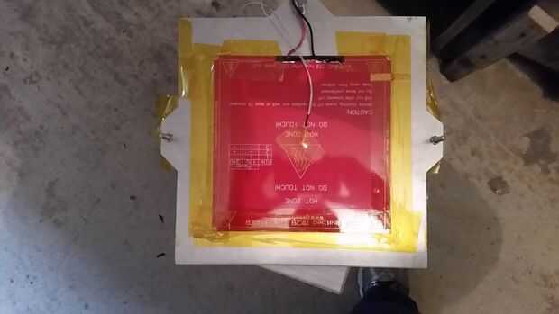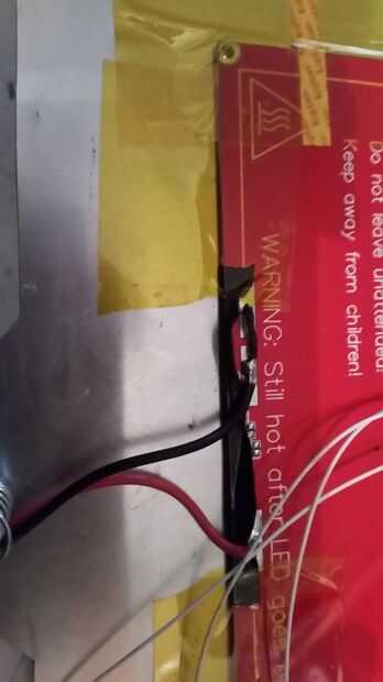 Cama de calor: Elegí una cama de 200x200mm RepRap calor debido al precio. Lucha para subir la temperatura en mi garaje muy frío. Puedo añadir algun aislante a la parte inferior de la placa de la construcción y probablemente actualizar a un amplificador más caro más uno más adelante. Si vas más grande, compruebe las especificaciones de la Smoothieboard. Puede que necesite configurar una fuente de energía independiente que puede controlarse desde el batido. Compré un cable de 18 calibre para colocar la cama de calor a la Junta. Utilicé un conector de estilo decanos cerca de la cama para desconectar cuando sea necesario. (Yo tenía varios de mi hobby RC) Había soldado los cables positivos y negativos en. La versión de tablero que compré tenía una conexión de 12V y de 24V. He puesto la cama de calor con Kapton cinta a lo largo de los 4 lados. Puedo añadir algún otro método en el futuro, pero esto parece funcionar por ahora. Coloqué el termistor en el agujero del centro de la cama de calor y mantiene en su lugar con una pequeña plaza de Kapton cinta.