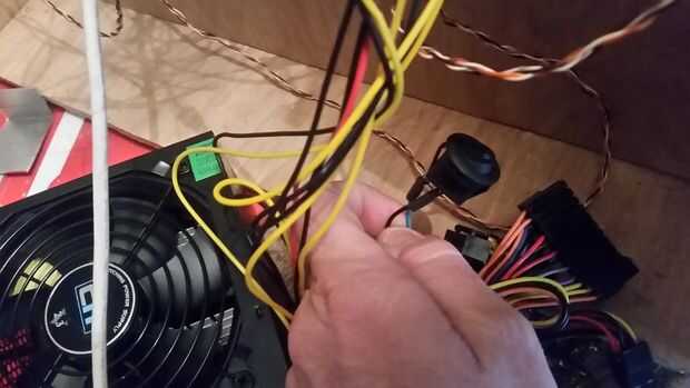 ATX Switch: Cable un interruptor o puente del cable verde a uno de los cables de tierra negra.