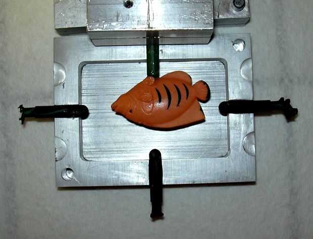 Nota: este marco de molde tenía recortes de bebederos en los 4 lados, así que tuve que bloquear los otros tres recortes. Pero, me di cuenta que los marcos de molde de epoxy en la Web www.easyplasticmolding.com ahora sólo tienen un recorte solo rabos, así que esto puede no ser necesario.