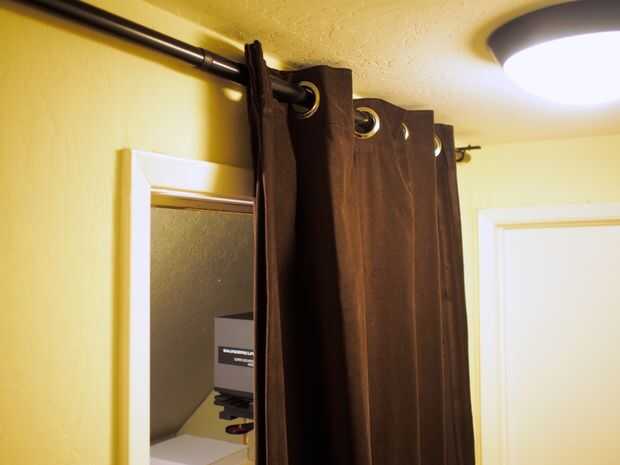 Para crear oscuridad, opté por una cortina. Me gusta su flexibilidad porque puedo pasar conductos debajo de la cortina y sello todavía luz. Para esta parte, he comprado todo lo de IKEA: