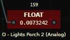 Broca 159: luz Porche 2 (analógico): Este es el bit de flotador estándar utilizado para el control de la luminancia de Porche luz 2 que es cambios de luminancia con la siguiente gama: