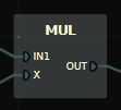 Función MUL (multiplicación): Esta función multiplica el valor de IN1 & X y da el resultado a la
