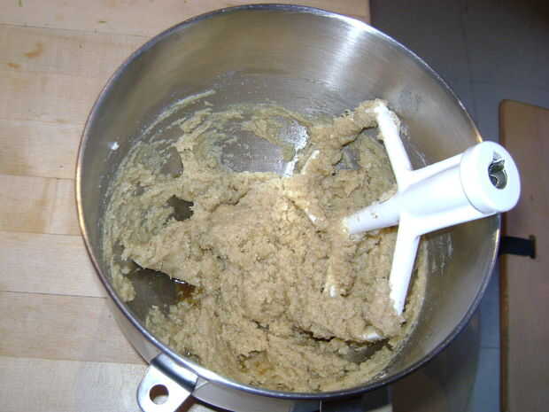 Después de mezclar los ingredientes enumerados anteriormente añadir dos huevos orgánicos uno a la vez
